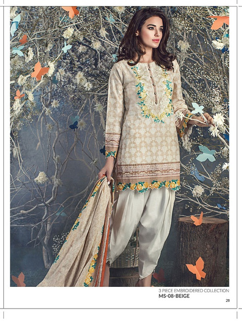 AlKaram Mid Summer 3 Piece Embroidered Chiffon MS-08-Beige