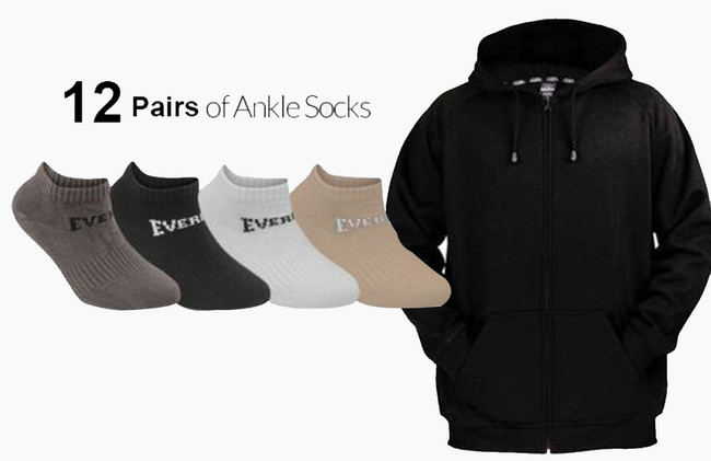 Pack of a black hoodie and 12 pairs export quality ankle socks