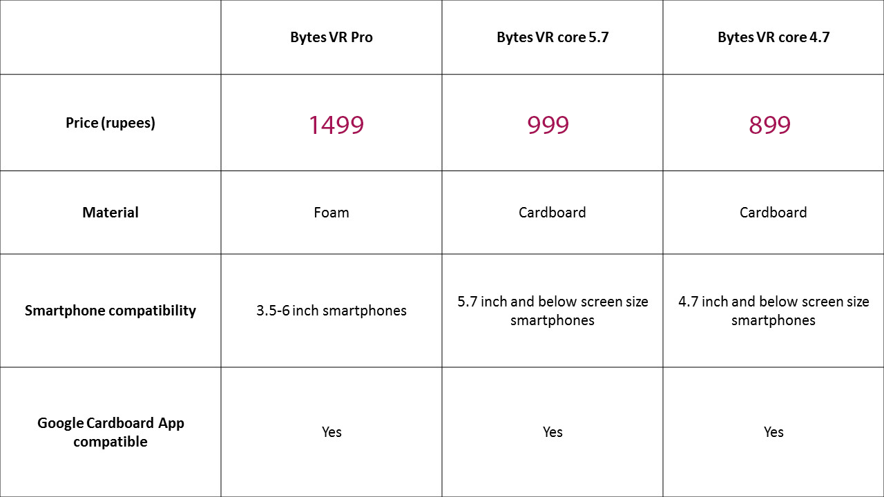 Given below are details concerning pricing and other details. As before, bytes.pk wants to cater to as many customers as possible, and therefore, has stamped affordable price tags on all three VR headsets.