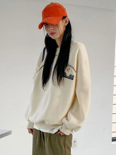 Fifth Avenue DIFT388 Mountain Printed Sweatshirt - Cream