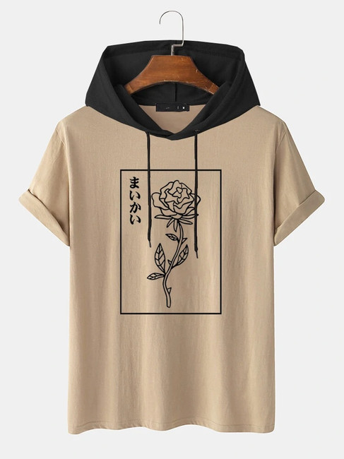 Fifth Avenue Floral Text Print MIFT449 Hooded ROKA T-Shirt - Cream Black