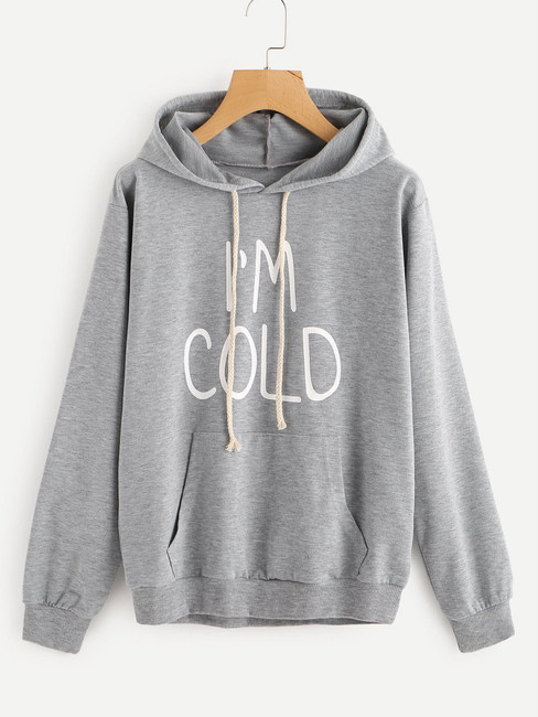 Fifth Avenue I'm Cold Print Hoodie - Grey