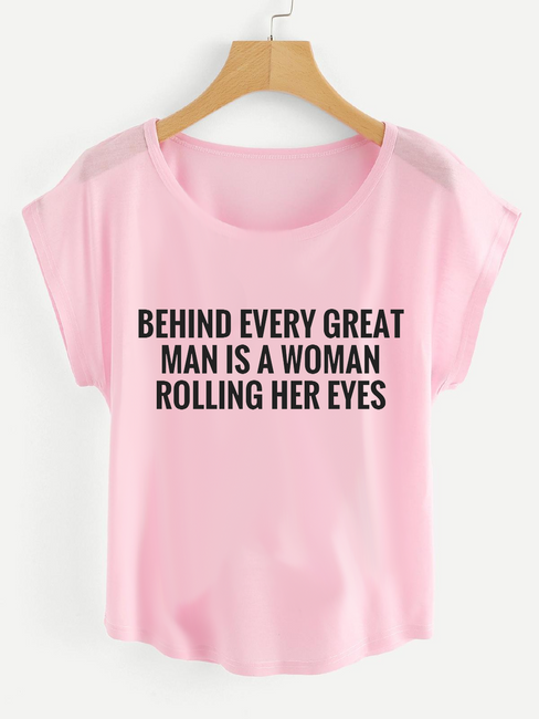 Fifth Avenue Women's Behind Every Guy Rolling Eyes Printed Dolman T-Shirt - Pink
