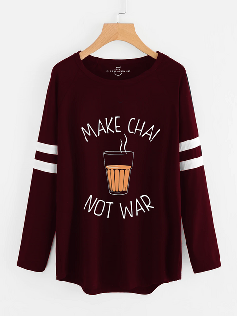 Fifth Avenue Women's NAZA Full Sleeves Nonza Florals Printed T-Shirt - Maroon