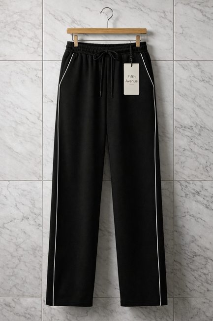 Fifth Avenue Womens Striped Wide Leg Track Pants - FAW26PA4 - Black