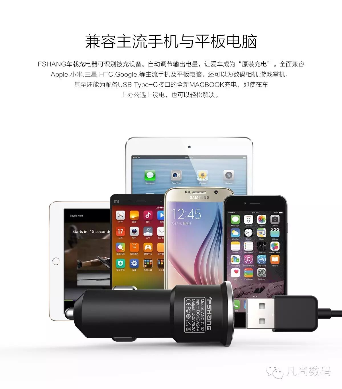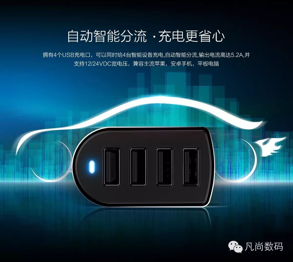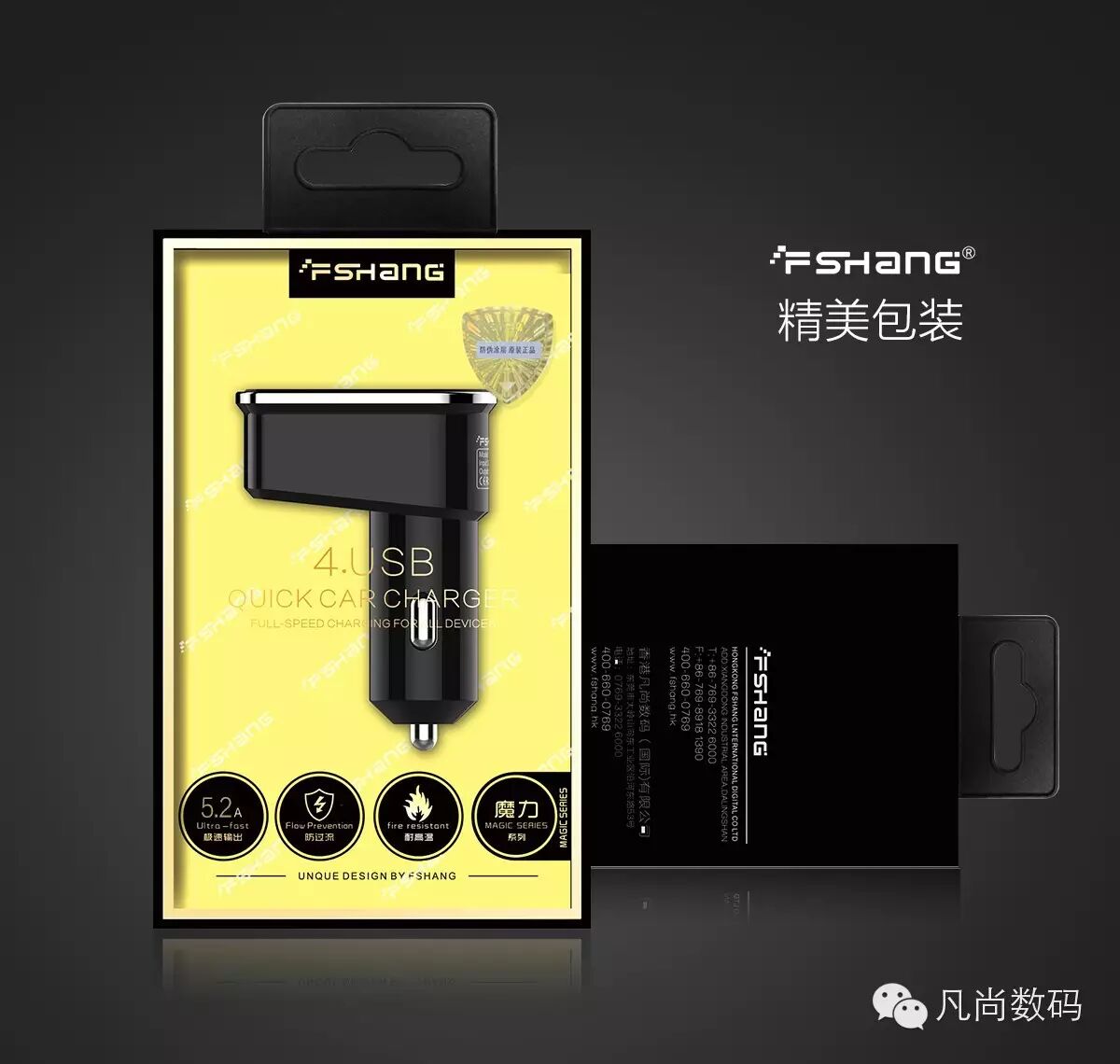 fshang 4 Port USB Car Charger