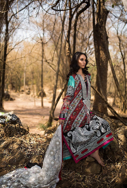 Front: 1.25M; Back: 1.25M; Sleeves: 0.67M; Embroidered Net Dupatta: 2.5M; Trouser: 2.5M; Embroidered Neck Motif: 1 Pc