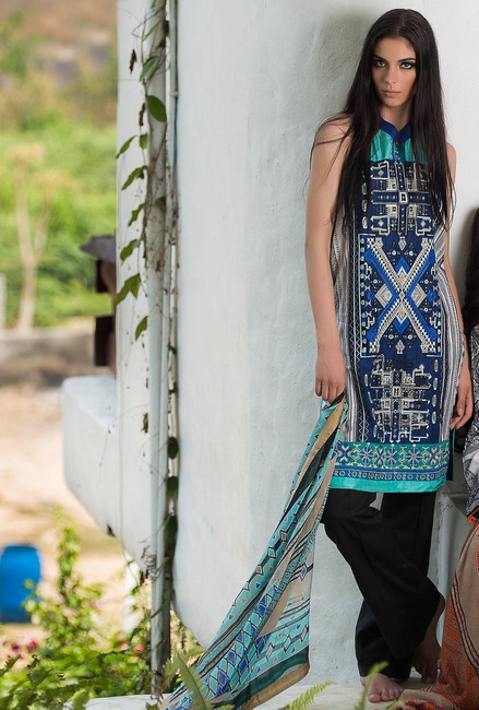 Front: 1.25M; Back: 1.25M; Sleeves: 0.65M; Chiffon Dupatta: 2.5M; Trouser: 2.5M; Embroidered Front Panel: 1 Pc; Embroidered Border: 1 Pc