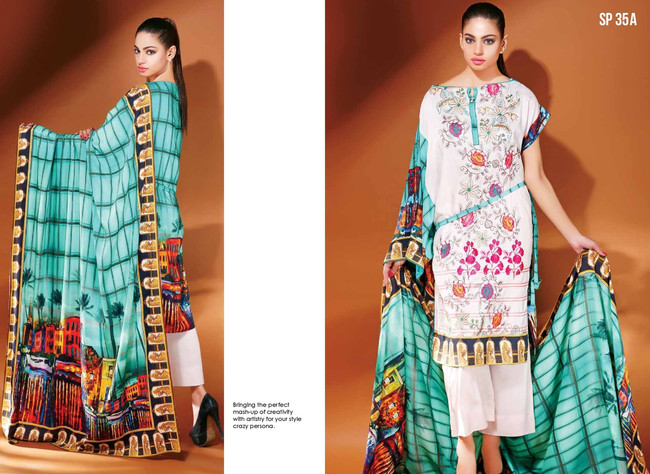 The Nation Digital Embroidered Linen Collection by Riaz Arts offers gorgeous 3 piece linen suits with wool shawl. (Unstitched)