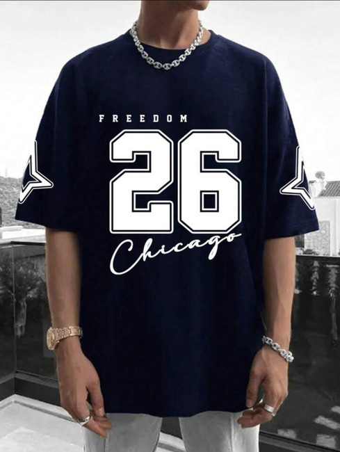 Nine Zero Chicago 26 Printed NZMT7 T-Shirt - Navy Blue