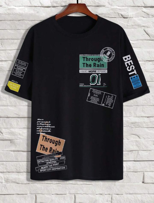 Nine Zero Stickers Printed NZMT1 T-Shirt - Black
